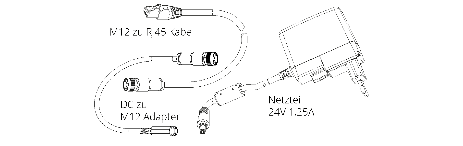 - Netzteilkabel mit gerader M12-Buchse und DC-Stecker, Länge: 30 cm