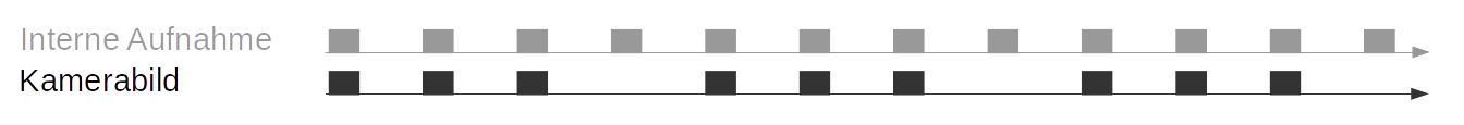 PUT http://<host>/api/v2/pipelines/0/nodes/rc_camera/services/parameters?fps=<value>PUT http://<host>/api/v1/nodes/rc_camera/parameters?fps=<value>Die Kamera läuft immer mit 25 Hz, um die Funktion von internen Modulen, die eine konstante Bildwiederholrate benötigen (wie zum Beispiel die visuelle Odometrie), sicherzustellen. Die vom Benutzer definierte Bildwiederholrate wird, wie in der folgenden Abbildung gezeigt, durch das Weglassen von Bildern erreicht, die für das Stereo-Matching und das Übertragen per GigE Vision benutzt werden. Letzteres dient der Reduktion der Bandbreite.