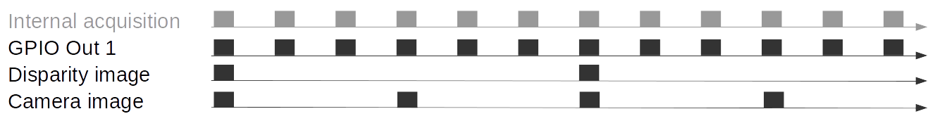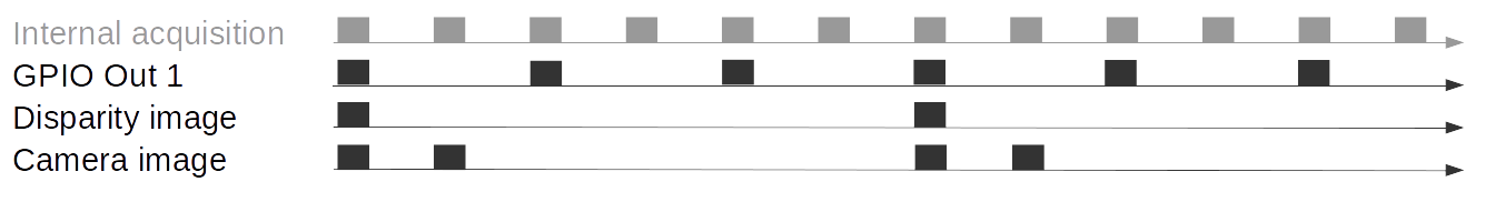 GPIO Out 1 is HIGH for the exposure time of every second image. A disparity
